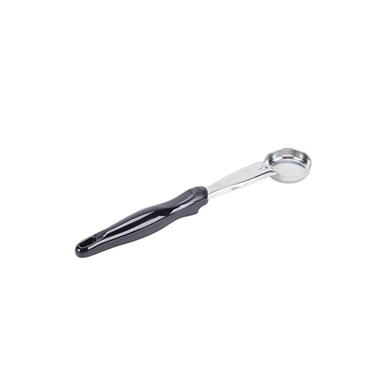 Vollrath Jacob's Pride Round Solid S/S Spoodle w/ Color Coded Handle, Black, 1 ozThis 1 oz spoodle is great for any busy kitchen and has a built in stopper notch to prevent spoodle from sliding into food product.Ergonomic design offers comfort and reduces hand fatigue Textured handle surface prevents slippage Capacities clearly stamped on shaft for easy identification Handle Color: Black Capacity: 1 oz Length: 12-3/16" Material: Mirror finish stainless steel shaft Nylon handle is heat resistant up to 450° NSF Approved 100953