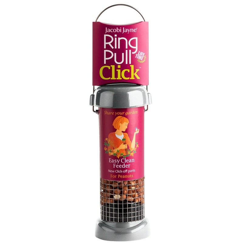 - [ Durable Construction ] The Ring Pull Click Peanut feeder is comprised of tough metal fittings that maintain resistance against squirrels and larger birds.