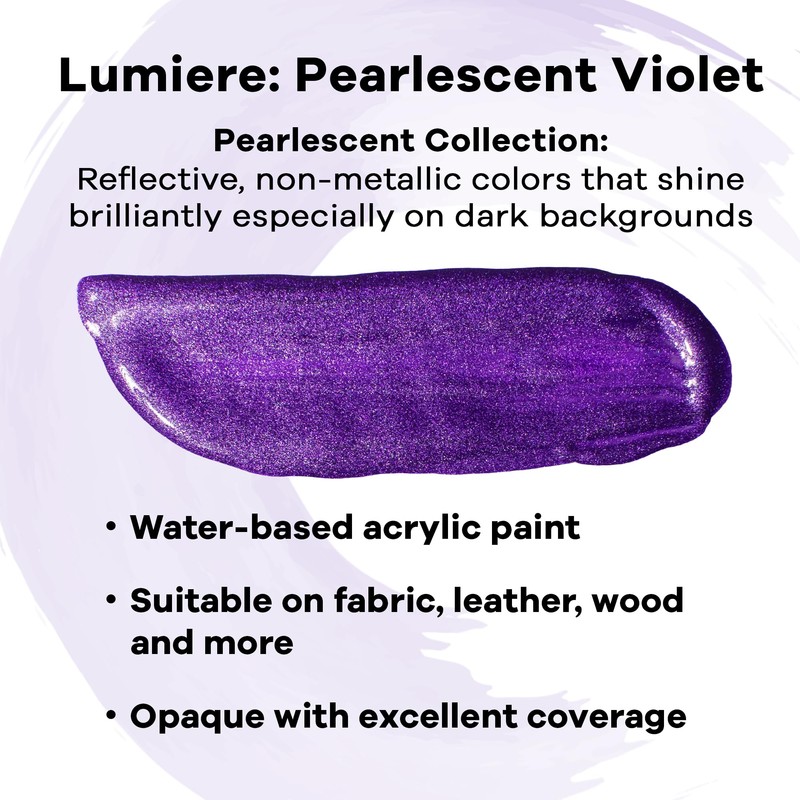 Jacquard Lumiere 8oz Fabric Paint Pearlescent Violet - Metallic Paint for Fabric, Leather, Canvas, Paper and Wood - Light-bodied Metallic Acrylic Paint - Lightfast & Vibrant Metallic Acrylic Paints