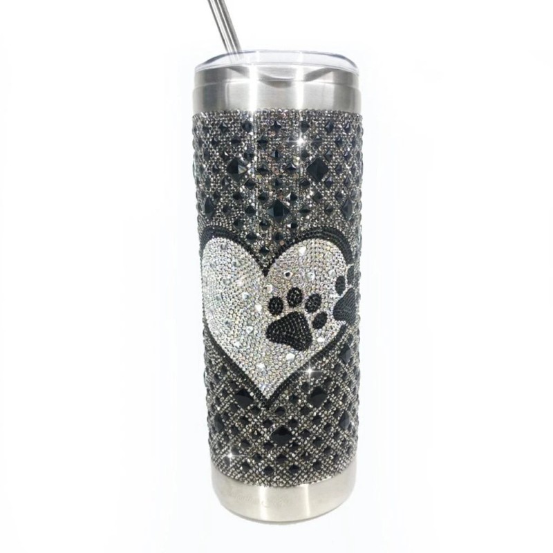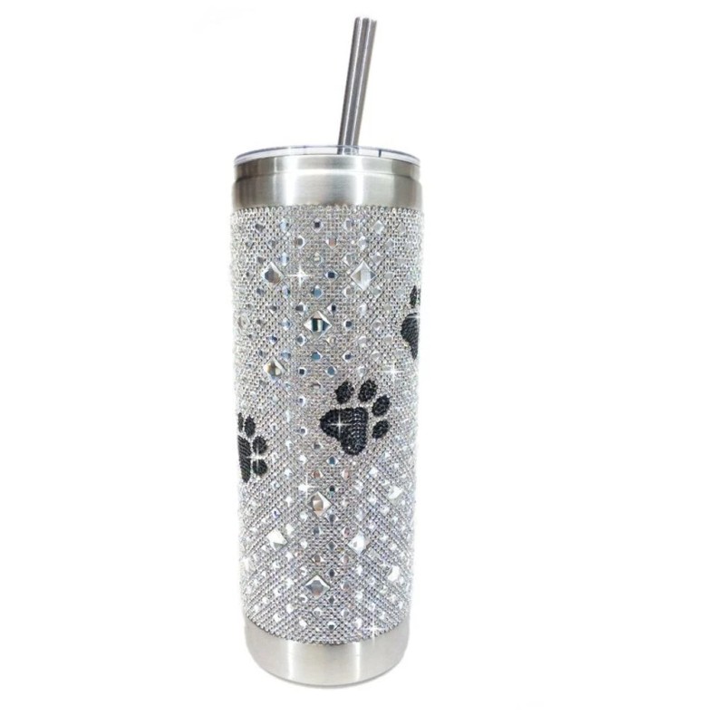 JACQUELINE KENT Diamonds in the Ruff Tumbler with Straw 7 Color Choices - 1sz, Hematite with Black Paw, New