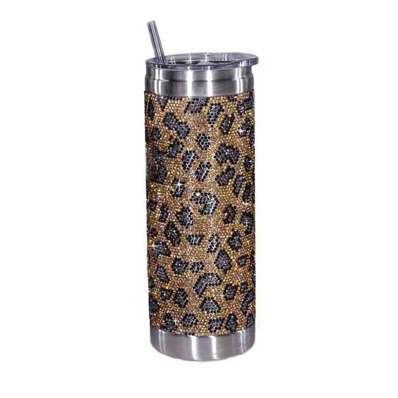 Each resin crystal lattice encased tumbler includes a food grad slider lid and straw packages in an attractive velvet gift bag.