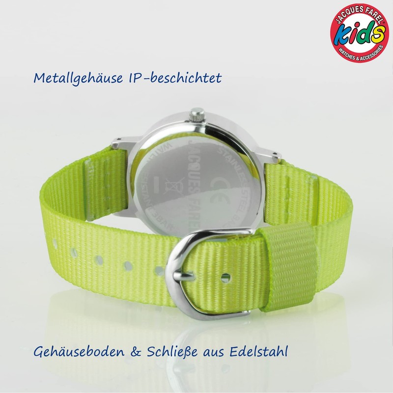 JACQUES FAREL Happy Learning KOP 05 Children's Analogue Quartz Watch with Textile Strap, Green, Strap.