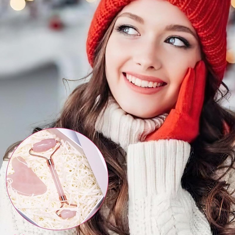 Jade Roller and Gua Sha Set, Rose Quartz Roller with Guasha Stone, Face Rolle...