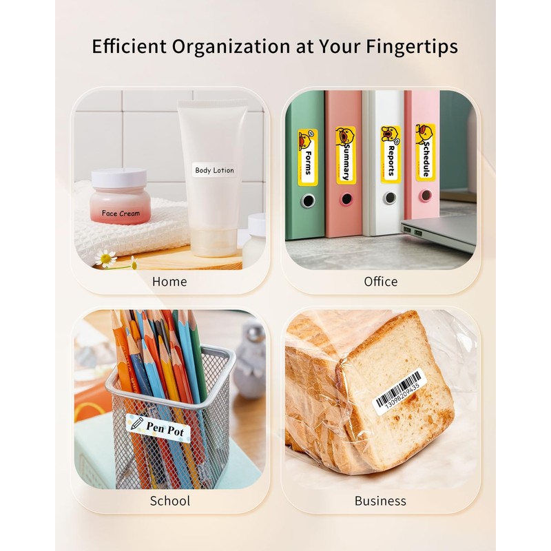 - Versatile Label Maker for Easy Organization:Discover the versatility of a label maker with tape, a tool for home, office, and school organization. At home, effortlessly organize clothes, food storage, cosmetics, and mailings. In office, streamline tasks with notebook tags, price labels, reminders, and more. For school use, teachers and students can label classroom essentials, personal items, and name tags. Embrace the joy of gifting on Festival with a label maker—adding fun and convenience to everyday tasks!