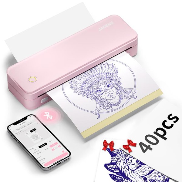 JADENS Wireless Tattoo Transfer Stencil Printer, Portable Thermal Tattoo Machine for Tattoo Beginners with 40pcs Stencil Paper, Rechargeable & Inkless:_Pink