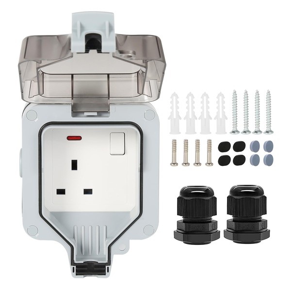 Jadeshay 1 Way Outside Socket Outdoor Plug Sockets Waterproof Wall Socket with Independent Switch for Garden IP66 13A Grey