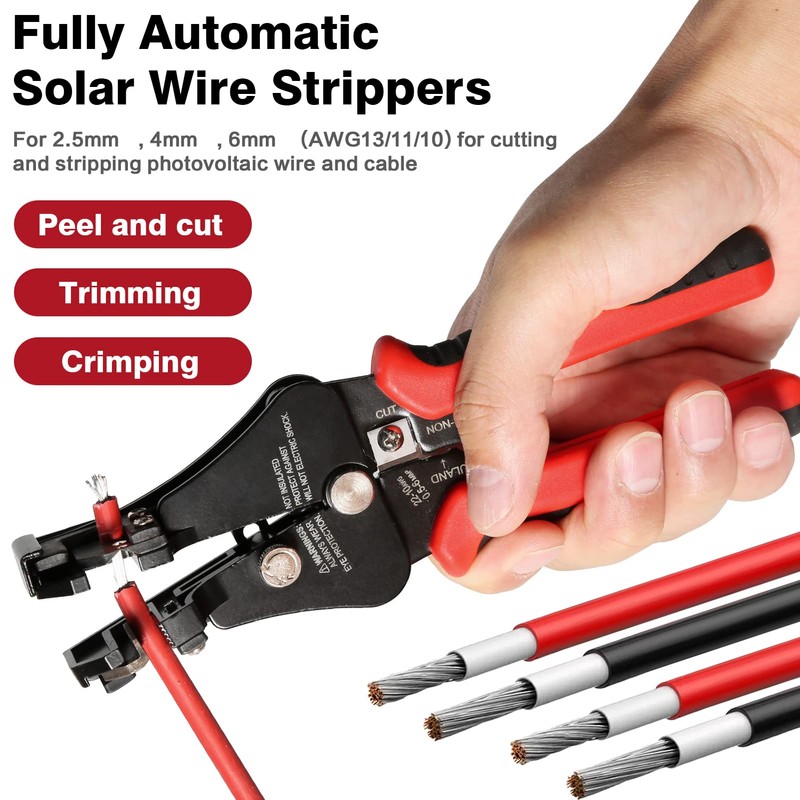 • Ideal Helper: Professional PV Wire Stripper for 2.5mm², 4mm², 6mm² (AWG13/11/10) PV wires and cables for cutting and stripping. Alloy steel jaws are designed to peel off the cable sleeve easily, keeping the wire cores intact, with high quality blades for efficient cutting.