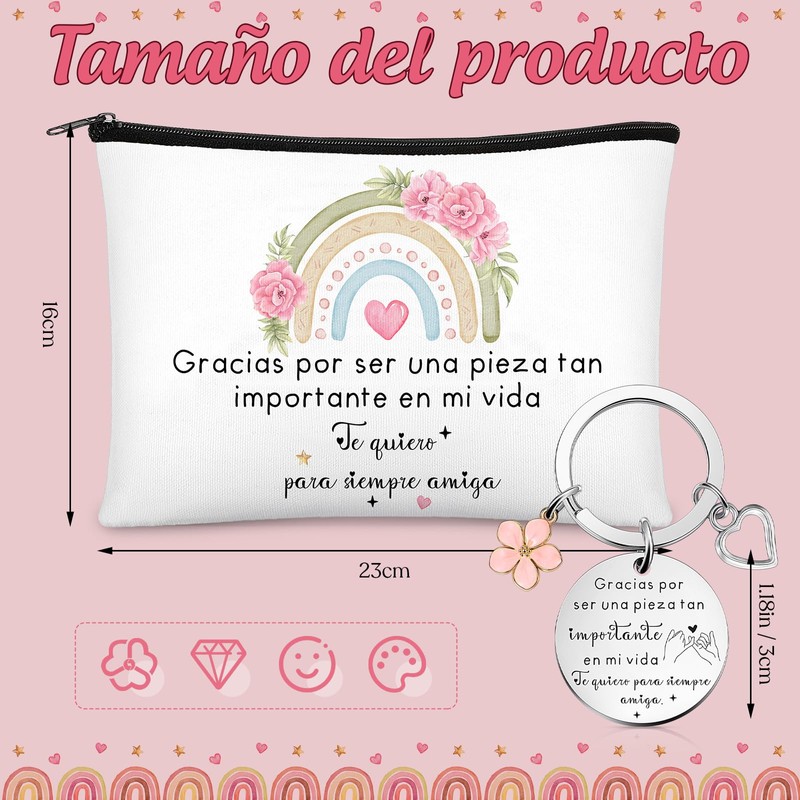 - Sweet Quote The cosmetic bag "Friendship" and the keychain "Friends" are with the quote, [Gracias por ser una pieza tan importante en mi vida. Te quiero para siempre amiga], which can be the ideal gift for your friends for Christmas, Thanksgiving, birthday and graduation to show them your love and care