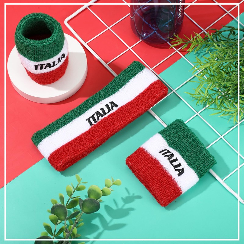 Jadive Italy Sweatband Set Italy Headband and Wristbands Includes 1 Head Sweatband and 2 Sports Wristband Costume Absorbing Headband for Men Women