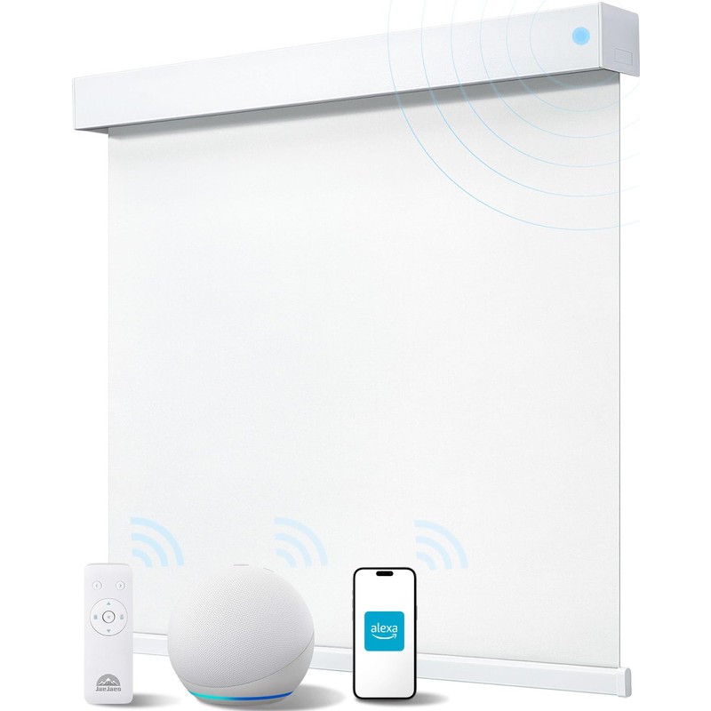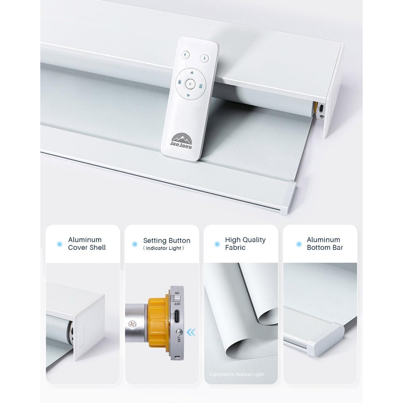 JaeJaes Smart Roller Shades for Windows, Alexa Motorized Blackout Blinds with Remote Control, Easy Install Automatic Blinds for Indoor by Electric & Solar Power (36" W X 72" H, White)