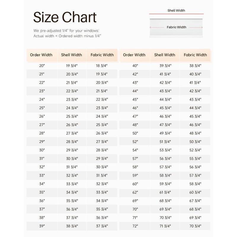 As for installation, our remote control blinds for indoor windows are designed to be simple and easy to install. With an overall height of 72 inches and a thickness of 2.6 inches, the actual width (shell width) is 1/4 inch less than the ordered width, leaving a gap on each side when installed internally. Therefore, when choosing the size, please adjust accordingly based on the actual installation method to ensure smooth installation of your motorized window shades with remote.