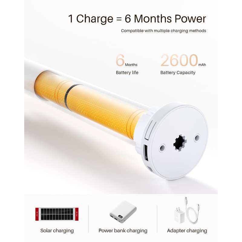 • MULTIPLE CHARGING OPTIONS: Our smart blinds for windows come with a built-in 2200mAh rechargeable lithium battery, offering 3-6 months of use on a 6-hour charge, freeing you from frequent charging. The package includes a 3-meter USB charging cable for easy connection to any USB power source. Additionally, we offer an optional solar charging panel, providing the convenience of green energy (available for viewing in-store if interested)
