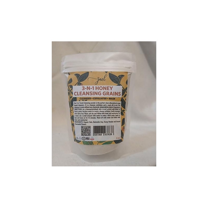 Jael Jael-3 N1 Honey Cleansing Grains, 4 oz, exfoliator, masque and cleanser. Contains organic oats, honey powder,bentonite clay and ground chamomile. As natural as can be.