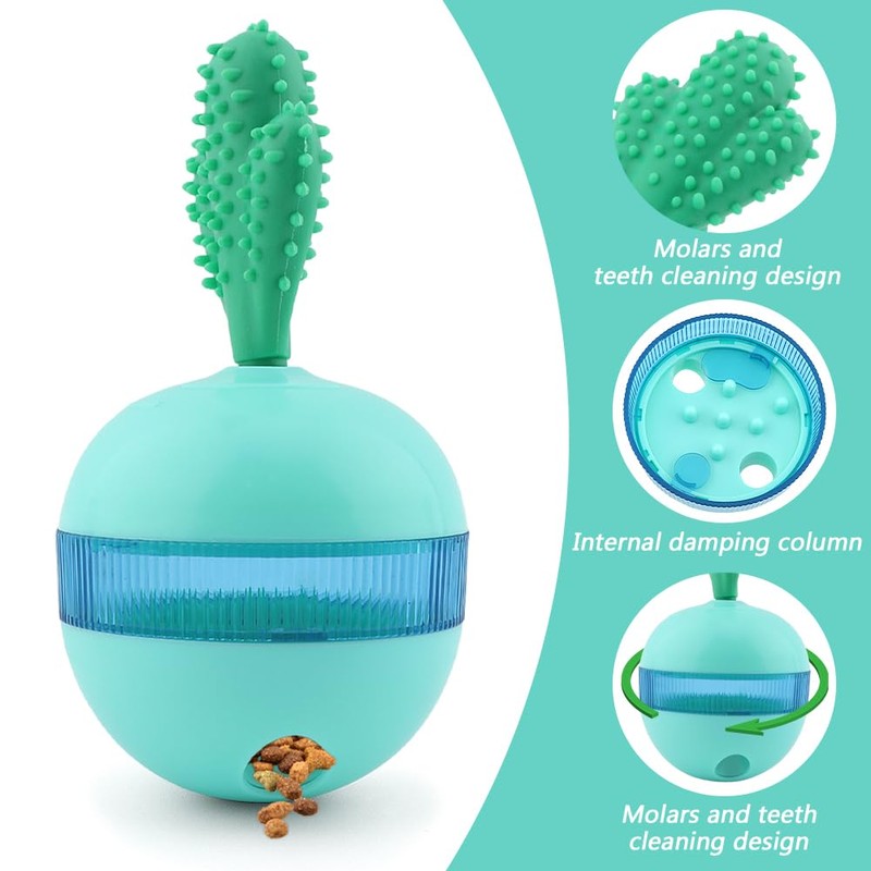 - 【LEAK PROOF FOOD BALL】The tumbler dog toy has small holes that allow dry food or treats to gradually leak out while your cat plays with it. This helps slow down your cat’s eating pace and encourages them to work for their food.