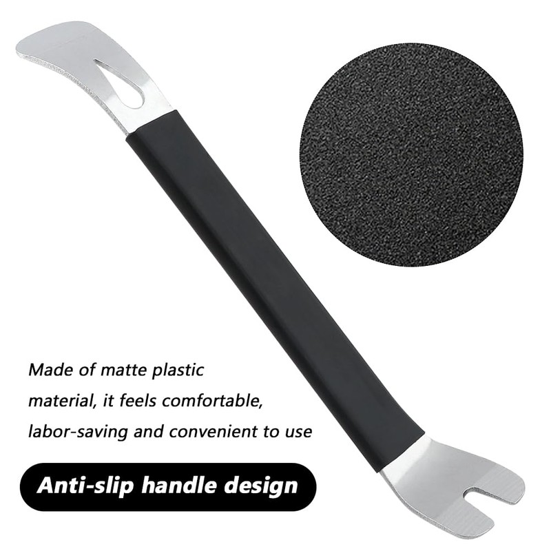 - 【EASY TO USE】The edges are polished smooth, not hurting hands, ergonomic design, comfortable to hold, double-ended pry bar with non-slip plastic handle, easy to use, faster and more efficient to remove parts.