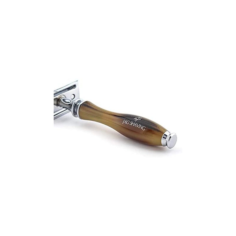 - JagShaving presents a classic looking shaving set with a double edged razor and leather case.