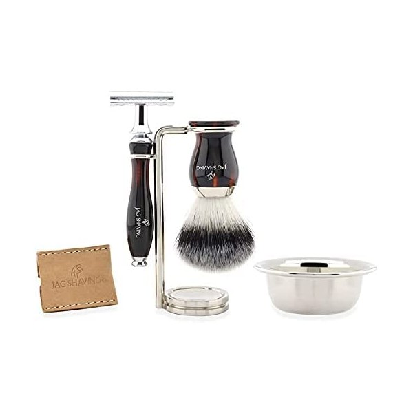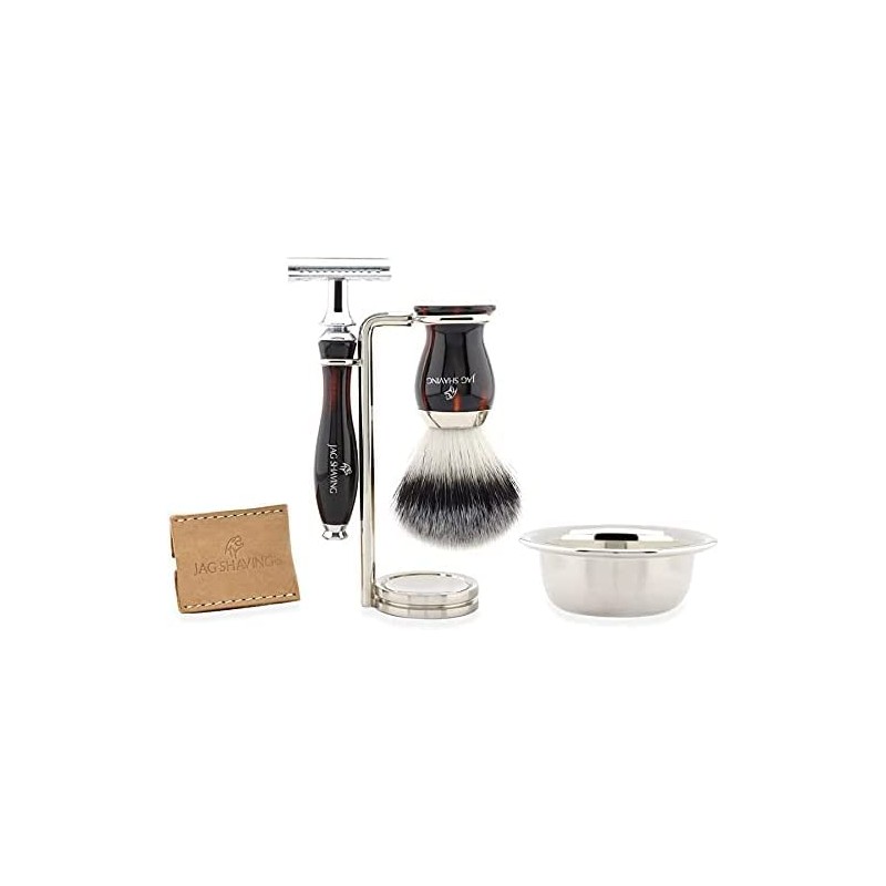 - This JAGShaving shaving set consists of a double-edged blade, shaving brush, shaving bowl and razor and brush stand in an elegant box.
