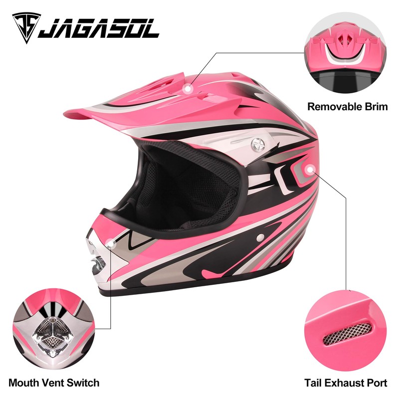 JAGASOL DOT Youth Motocross Offroad Street Dirt Bike Helmets for Kids 8-14,BMX MX ATV Helmet with Goggles DOT Approved(Pink,Y-S)