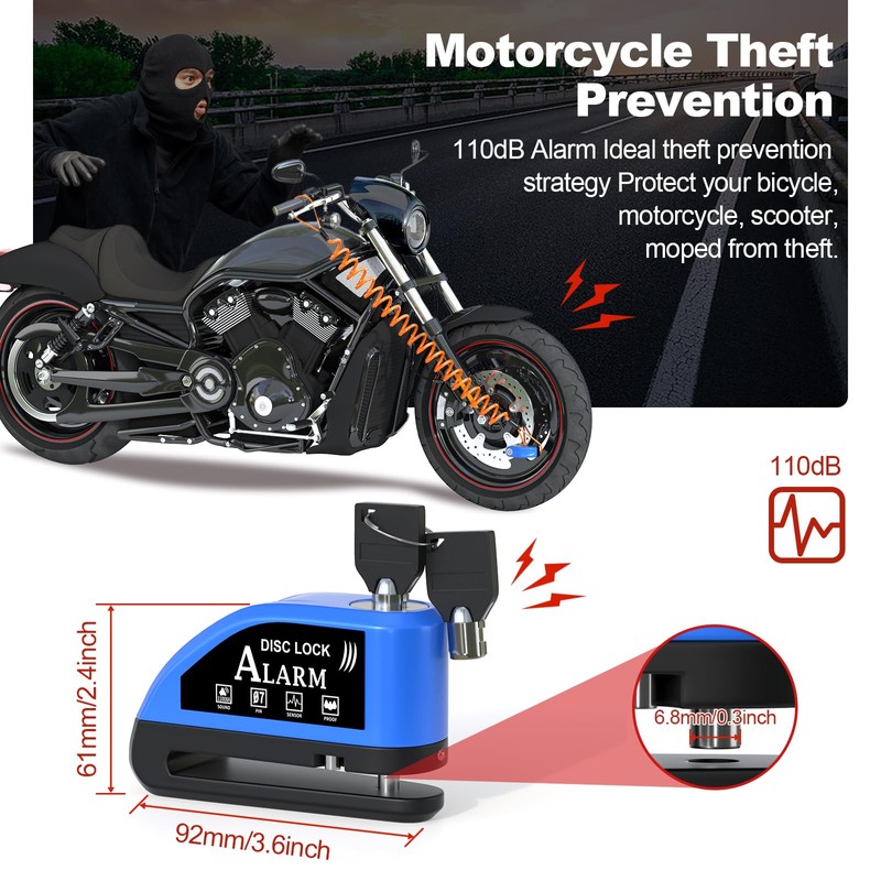 - Versatile Security Solution: Compatible with a wide range of vehicles, including motorcycles, dirt bikes, electric bikes, bicycles, and scooters with disc brakes up to 7mm thick, providing versatile usage for enhanced security both at home and on the go