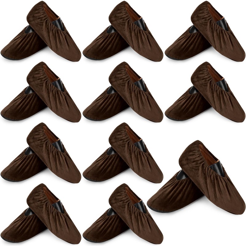 JaGely 11 Pairs Reusable Non Slip Cloth Shoe Covers Washable Thickened Boot Shoe Covers for Indoors and Households(Brown)