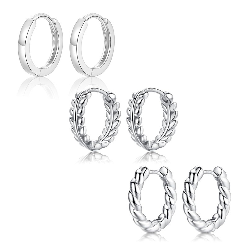 - Sterling Silver Earrings for Women: 3 pairs of earrings in different styles - classic glossy earrings, leaf shaped earrings, twisted rope earrings. 3 pairs of earrings packed in a velvet bag. Classic and simple style never goes out of fashion.