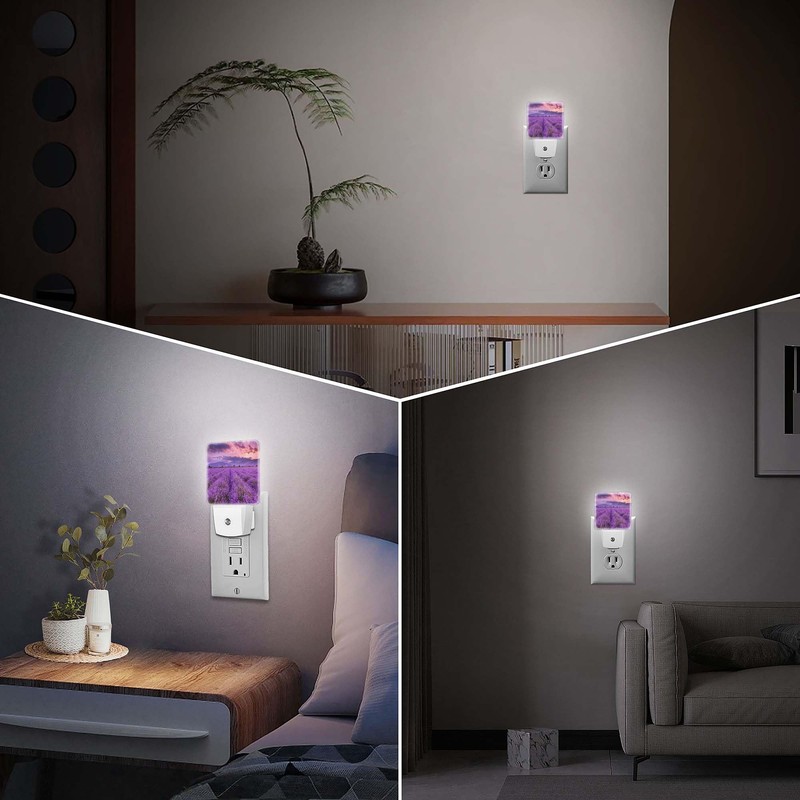 Jahiona LED Night Light Lamp with Smart Sensor Dusk to Dawn Sensor,Lavender Field Sunset and Lines Night Light Daylight White,0.5W Plug-into Wall for Adults,Bedroom,Bathroom,Hallway,Kitchen
