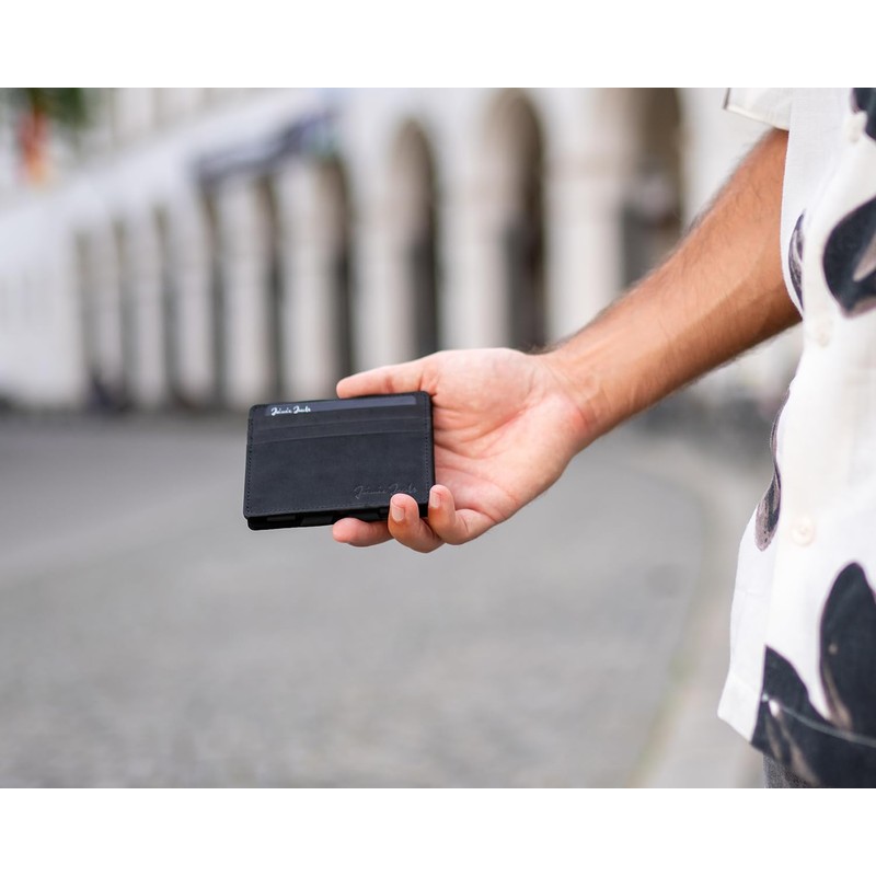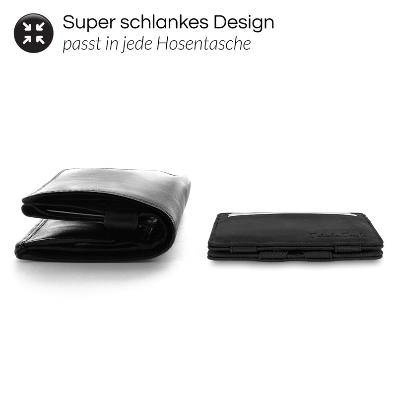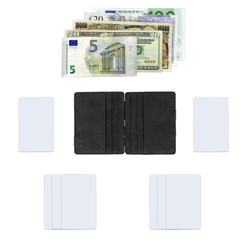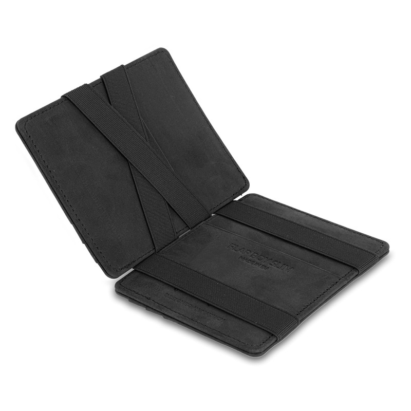 - Magic Trick Our Magic Wallet is equipped with the innovative Magic Flap feature. You simply place your banknotes loose on one of the inside pages into the magic wallet and close it. When reopening the credit card holder, the banknotes are safely stored behind the elastic bands as if by magic. A highlight that will impress your friends too! This sophisticated trick makes the Magic Wallet a favourite piece for style-conscious men.