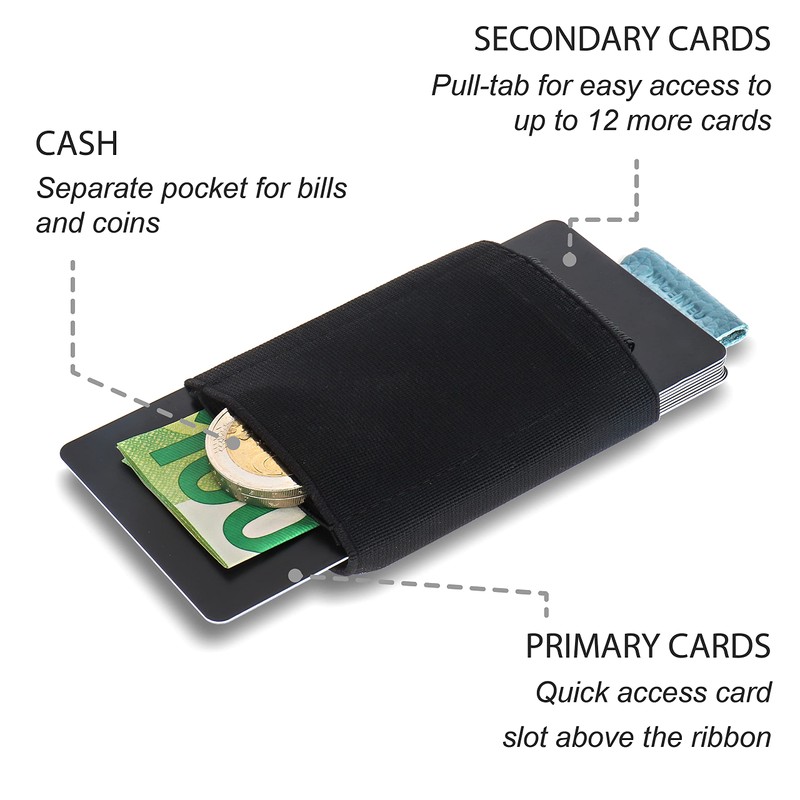 - Space for each card: For all other cards, use the main compartment of the wallet. The pull tab allows you to easily get to the required card even with many cards.