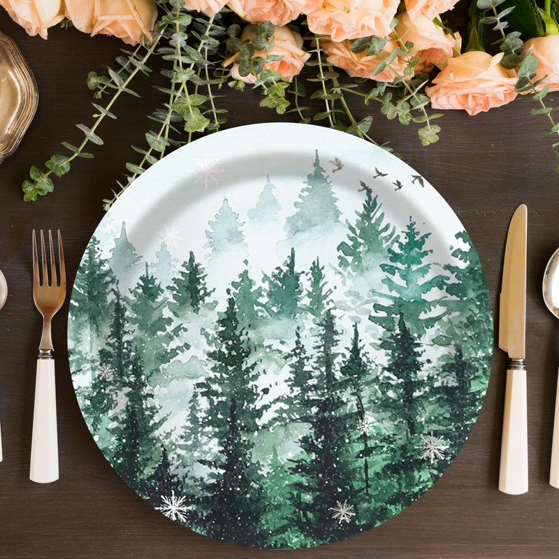 - Green Misty Forest Themed: Forest Vibes That Pop! Think soft green leaves blended with a misty haze—like bringing a morning forest right to your table! Even a simple fruit platter looks like an worthy post with these plates. Guests always rave: “These plates make the table look so cozy!”