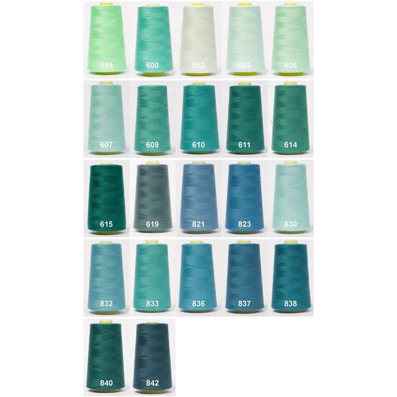 Jajasio Overlock Thread 50/2 in 200 Colours 5000 Yards (4570 Metres) Turquoise / Navy 832 Sewing Thread for Overlock Sewing Machines