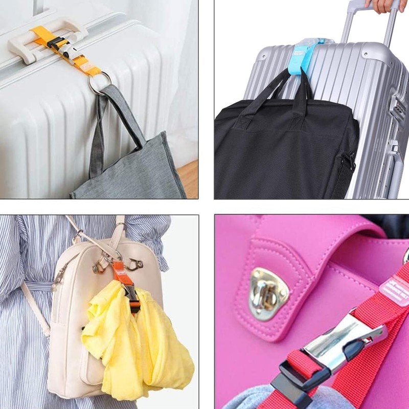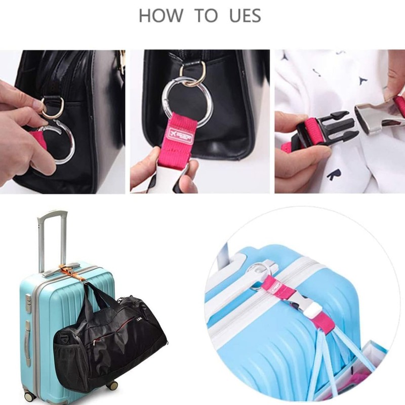 Instruction: Provide 2 ways connect your luggage, Ring hook can be open and close easily, the strap with a buckle can be adjust to fasten your stuff without falling.