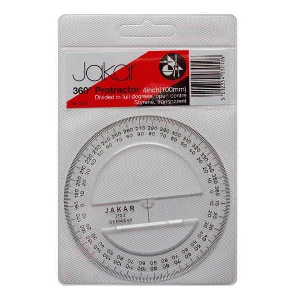Jakar Quality Protractor 360- Degree 100mm Transparent Clear School Maths 2103