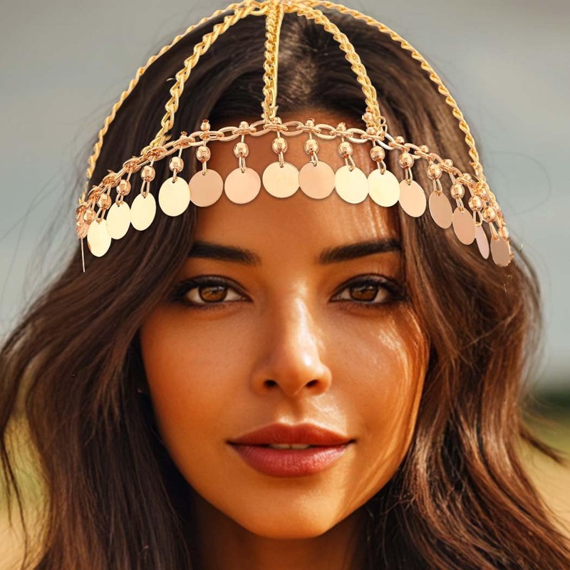 JAKAWIN Sequin Head Chain Jewelry Gold Egyptian Headpiece for Women