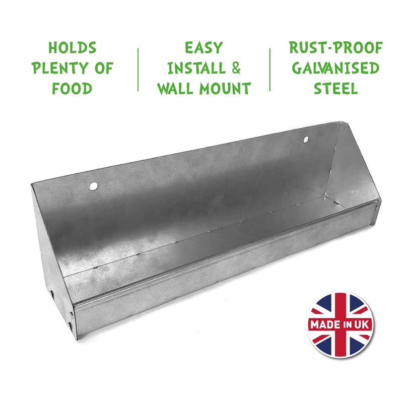 - No Corrosion or Rust: Manufactured using British Galvanized Steel, the trough can be used outside in all conditions without developing surface rust or corroding like other trough feeders available.