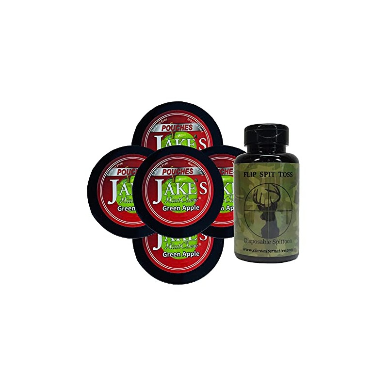 Jake's Mint Chew Green Apple Pouch - 5 Cans - Includes Mud Bud Disposable Spittoon (Deer MB)