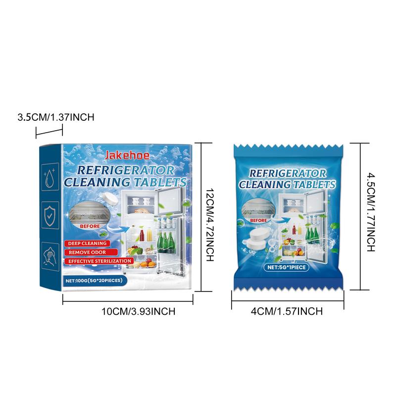 Our refrigerator cleaning tablets contain sodium bicarbonate and citric acid. It can have a sweet fruity aroma, which can effectively remove refrigerator odors and make the refrigerator smell fresher. It can effectively remove mold in the refrigerator and keep food fresh longer. Its use method is simple: 1. Dissolve a grain of refrigerator cleaning solution in a pot of warm water; 2. Wipe the inside and outside of the refrigerator with a towel dampened with cleaning solution. It can effectively remove stains on the refrigerator and make the refrigerator look new.