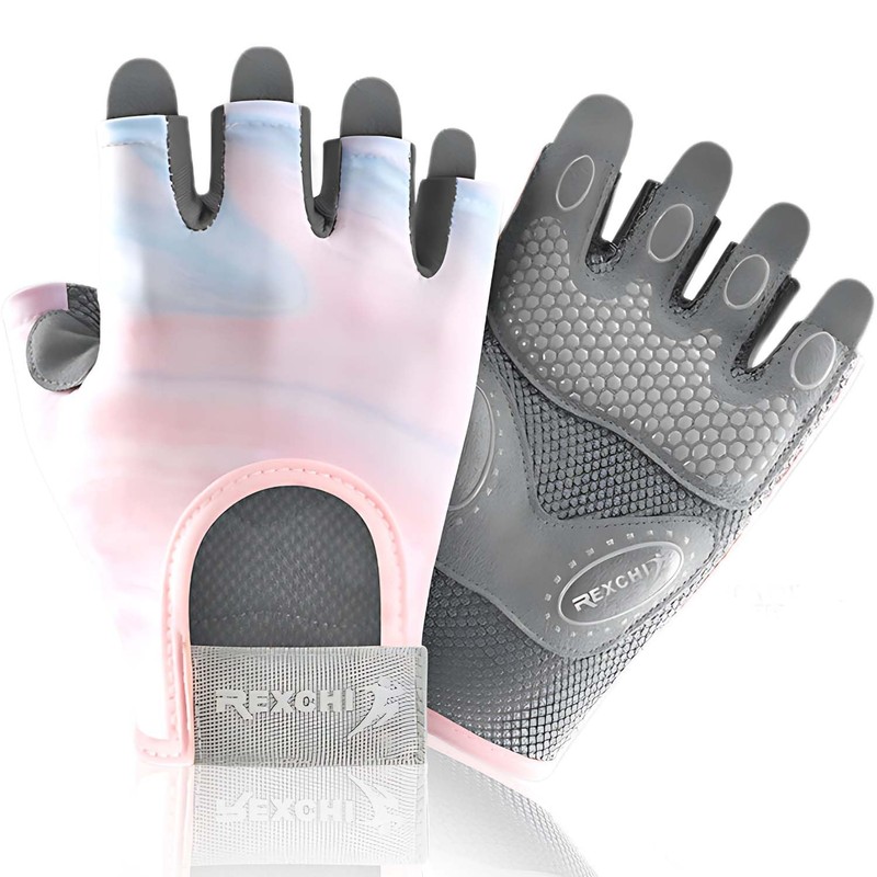JAKLENA22 Guantes Deportivos para Mujer,Guantes de Bicicleta Transpirables,Guantes Antideslizantes de Medio Dedo para Entrenamientos en Gym,Levantamiento de Pesas,Entrenamiento al Aire (Rosa Ahumado)