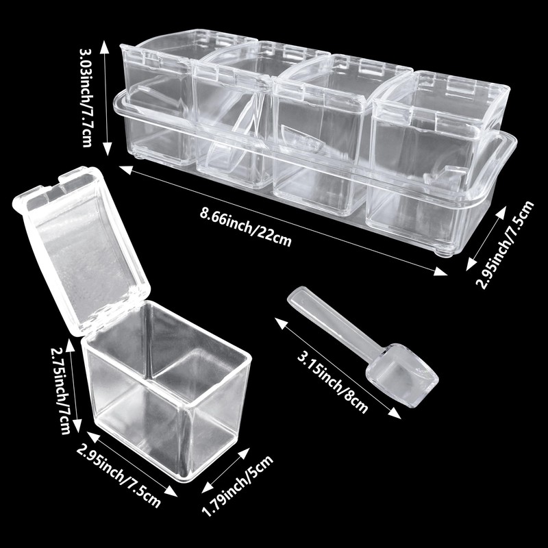 - Seasoning Box:sise 10 x 4 x 3.3 inches/ 26.3 x 10.3 x 8.3 cm,scoop is 5-1/8 inch, the capacity is 2 ml,giving you a pleasant cooking process