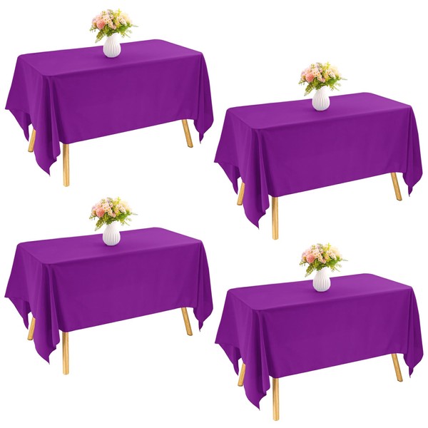 JALANCY 4 Pack Rectangle Tablecloth 60x102 Inch Purple Table Cloth for 6 Foot Rectangle Tables Washable Polyester Table Cover for Wedding Dining Table Buffet Parties Banquet Decoration(Purple)