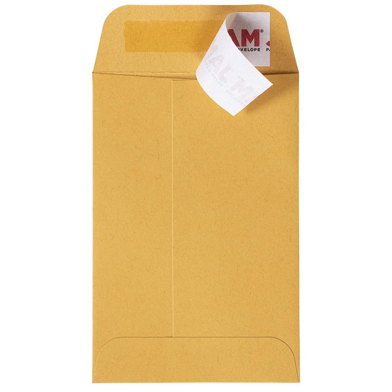JAM PAPER #3 Coin Business Commercial Envelopes with Peel and Seal Closure - 2 1/2 x 4 1/4 - Brown Kraft Manila - 50/Pack