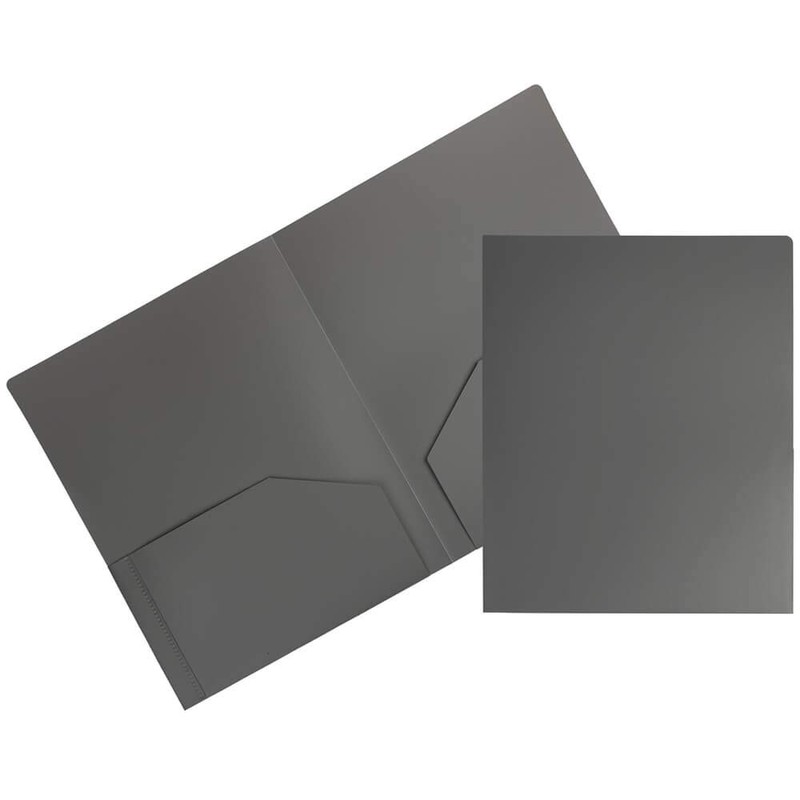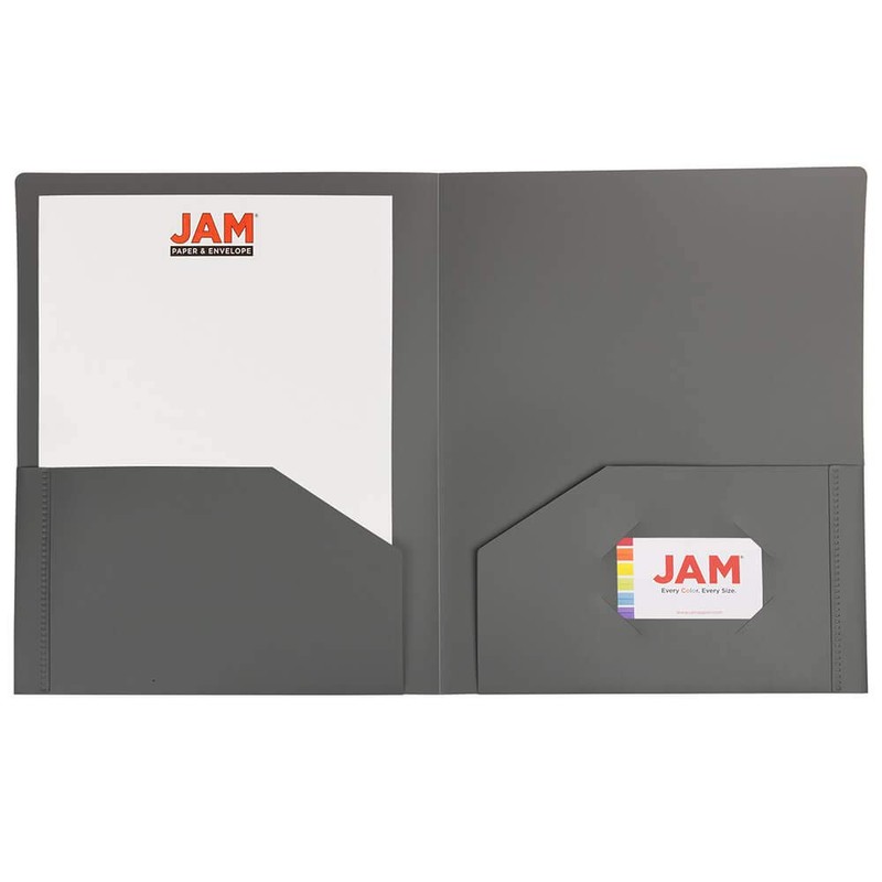JAM PAPER - Carpetas escolares de plástico resistente con 2 bolsillos, color gris
