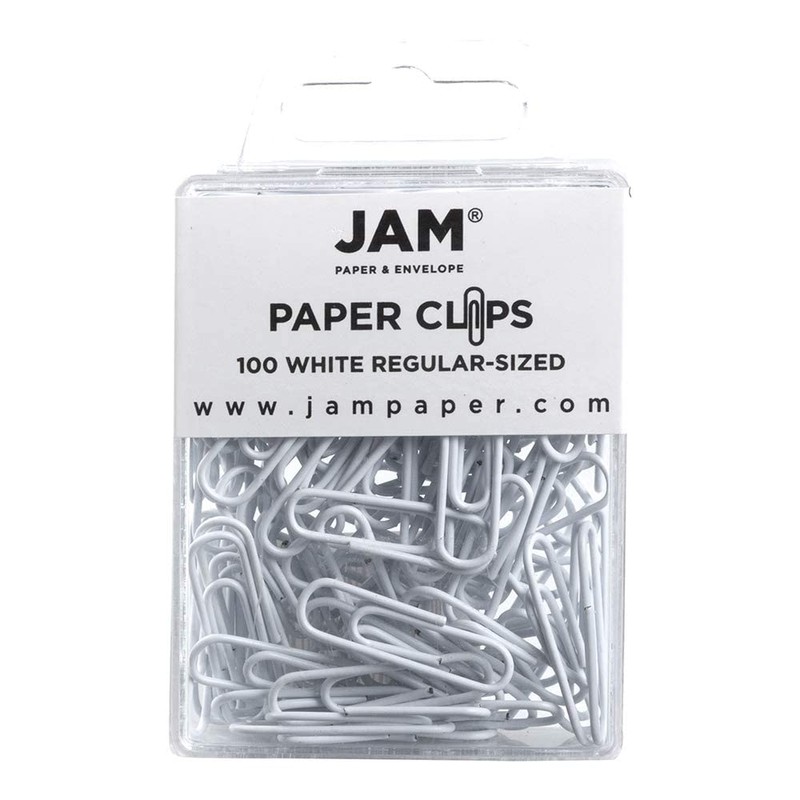 JAM PAPER Colorful Standard Paper Clips - Regular 1 Inch - White Paperclips - 100/Pack
