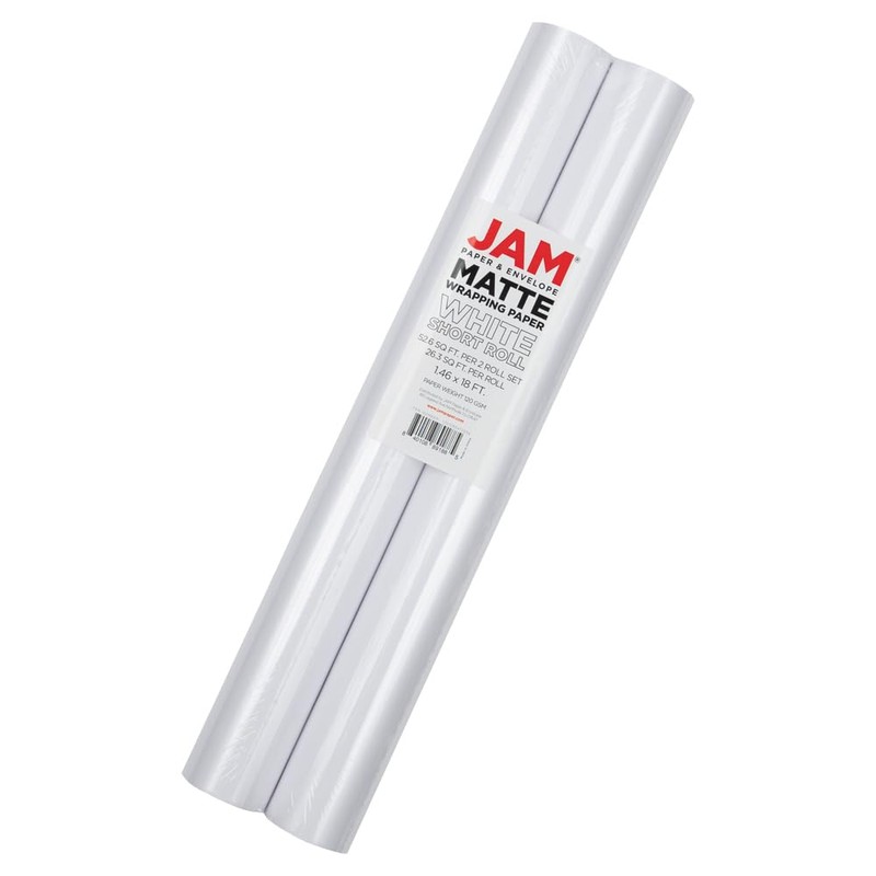 JAM Paper Gift Wrap - Matte Wrapping Paper - 52.6 Sq Ft Total (17 in x 18 Ft) - Matte White - 2 Rolls/Pack