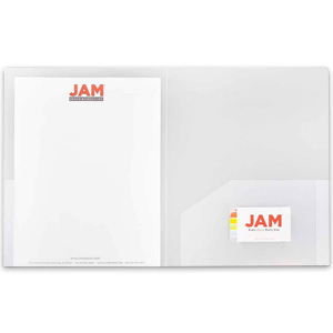JAM PAPER Heavy Duty Plastic 2 Pocket School Folders - Clear - 6/Pack