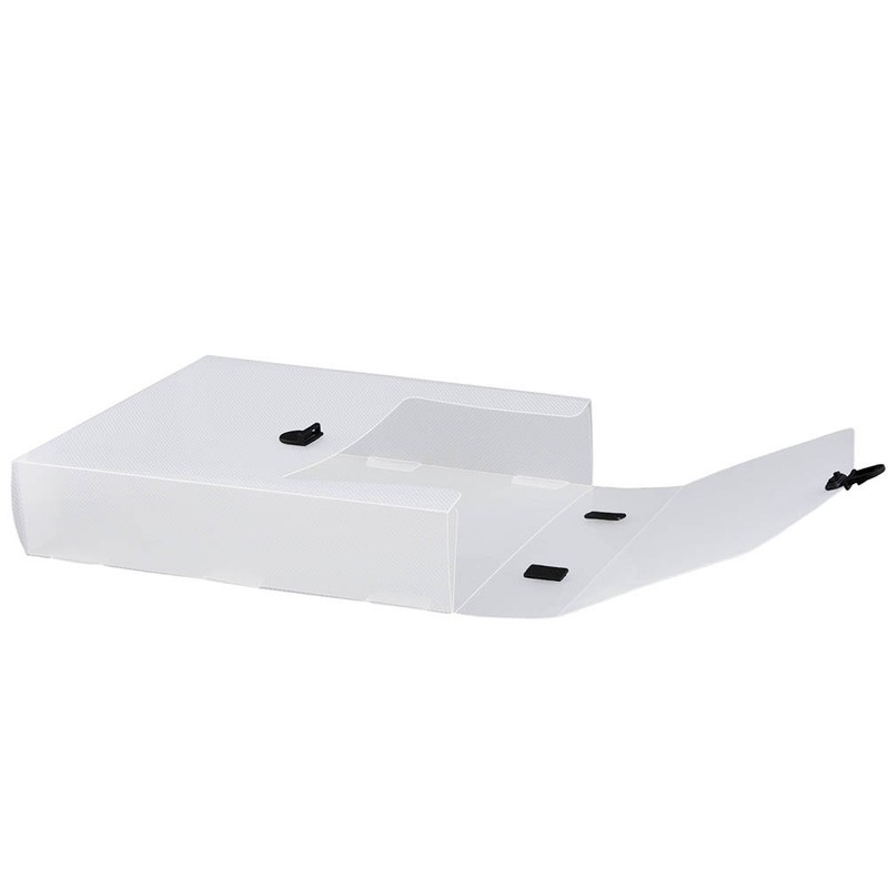JAM Paper Clear and Black Vertical Plastic Briefcase with Buckle Closure measures 9.25 x 12 x 2.5 inches in size and is made out of smooth and durable transparent plastic. This portfolio is sold individually and features a black plastic handle for easy and convenient carrying. In the front, the portfolio opens with a vflap opening and closes with a black plastic buckle closure. The vertical design of this case makes it perfect for enclosing upright-positioned standard letter size documents of files. Its clear quality gives you the advantage of being able to see the contents placed inside it without opening it up, which can make things easier to find when you're in a rush! Size: 9.25in x 12in x 2.5in | Color: Clear | Quantity: 1 (Sold Individually)