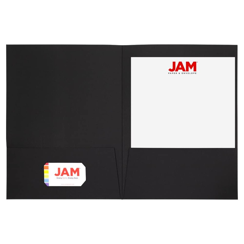 JAM PAPER Two Pocket Textured Linen Presentation Folders - Letter Size Business Folder - Black - Bulk 100/Box