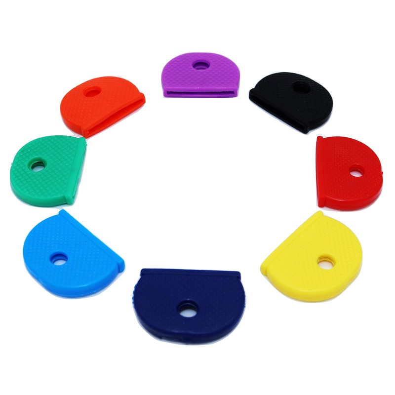 A simple and effective way to organise your keys making them easy to identify and quicker to unlock doors. A bright assortment of colours with no duplicates means that you will quickly associate the right key for each situation These key caps have a nice, tactile, rubbery feel with a molded grip. They're easy to fit - simply slide over the key and they remain firmly in place. Pack contains 8 key caps of assorted colours