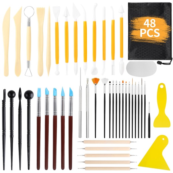 JAMATA 48-Piece Pottery Tool Set, Modelling Tool Set for Pottery Tools, Children Professional, Modelling Tool Set Clay with Storage Bag, Sculpting Tool for Professionals and Carving Tool Beginners