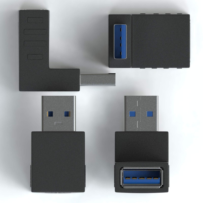 JAMEGA - USB 3.0 Angle Adapter 270° Angle Adapter | USB A Male to USB A Female USB Angle Plug Coupling Compatible with All USB Cables