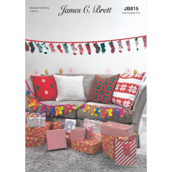 James Brett Double Knit Knitting Pattern for Advent Calendar Socks & Cushion Covers (JB815)